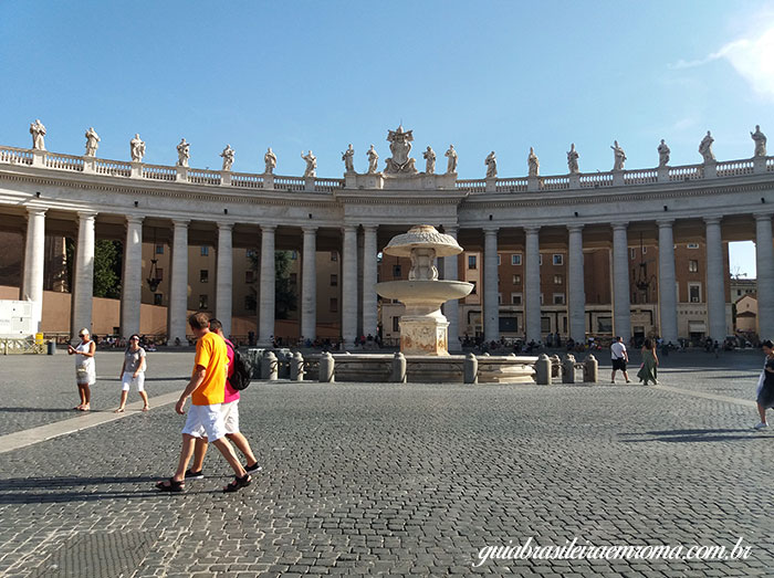 Antigamente entrava-se na praça por qualquer lado, através de qualquer coluna, era tudo livre. Infelizmente depois dos atentados de Paris em 2015, hoje existem duas entradas para a praça por causa do controle de metais que todos devem passar neste momento: à direita (Via di Porta Angelica) e à esquerda (Via Paulo VI), vindo da Via della Conciliazione.