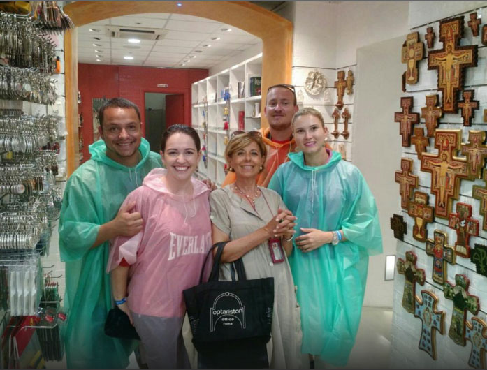 Luisa nos dá outras explicações sobre a construção da igreja e sobre a famosa Praça São Pedro, para depois dar as dicas de compras de souvenirs que só ela conhece!