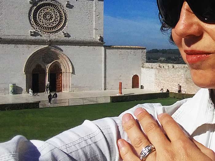 As jóias “Humilis“são uma minha paixão por que amo Assis e São Francisco e conheço o ourives de Assis, o Fausto, que as desenhou trabalhando o tema do “tau”, a última letra do alfabeto hebraico com a qual São Francisco assinava as suas cartas. Eu tenho várias coisas deles e a loja Vacanze Romane é um revendedor deles em Roma.