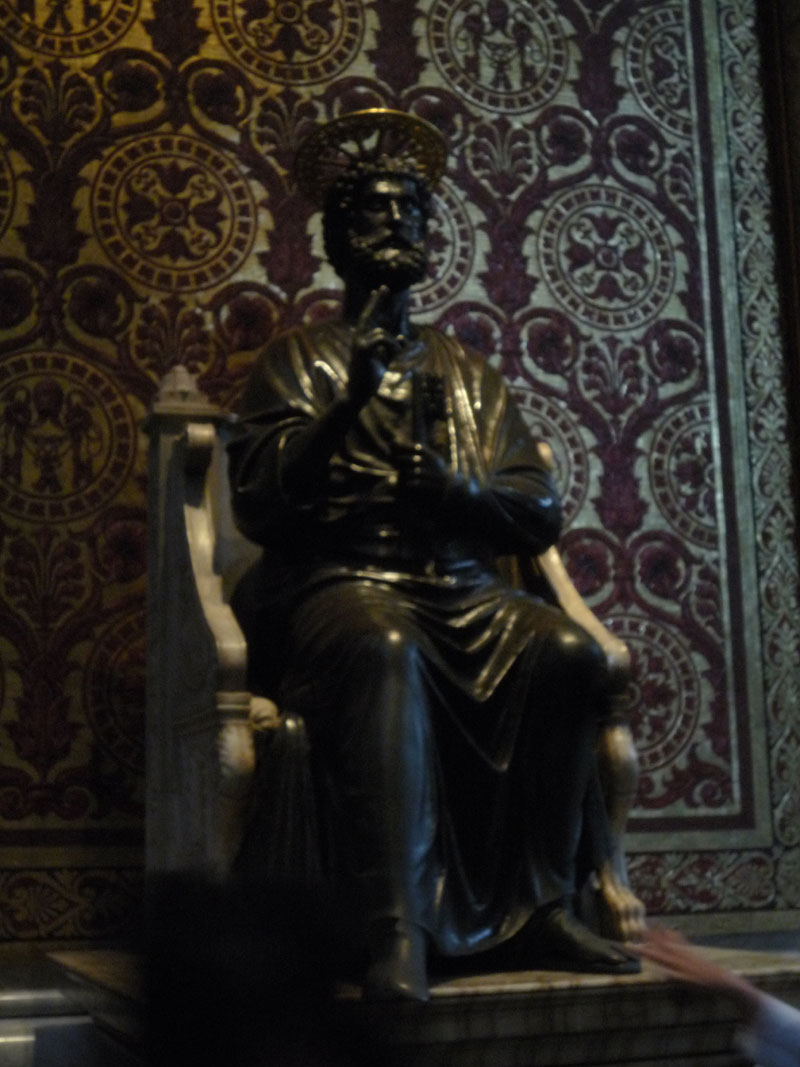Passamos então pela antiga escultura de Pedro, feita pelo grande escultor Arnolfo de Cambio, onde os fiéis tocam o seu pé, e depois seguimos para o ponto principal deste lugar de culto: a parte de onde se vê a tumba de Pedro, embaixo do baldaquino realizado pelo grande arquiteto e escultor Bernini.