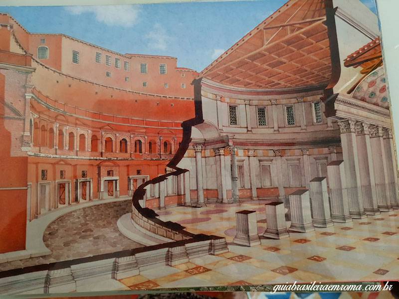 A obra “faraônica” de Traiano para comemorar a vitória sobre a Dácia era composta por um Fórum, uma basílica e o grande hemiciclo denominado “Mercado Traiano‘, num total de 275.000 m².