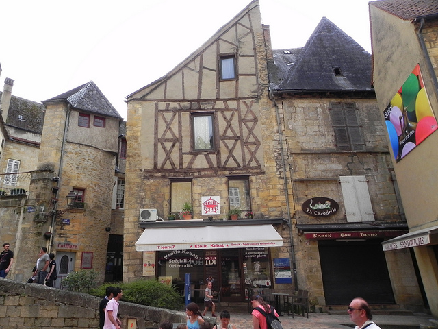 Confesso ter errado pelo menos ainda duas saídas (mas era fácil fazer um retorno!) até chegar em Sarlat, parar o carro num lugar bem central, e me sentindo uma heroina, liguei pro meu colega dizendo para ele vir me encontrar: isto era como tínhamos combinado. Pasmem, a viagem durou 6 horas e meia! Duas a mais do que dizia Google maps e o nosso “Bosley”, o escritório de Oxford.