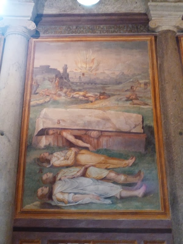 Depois passamos pela galeria dos tapetes (“arazzi” em italiano) que foram feitos baseados em desenhos de Raffaelo, que por sua vez foram produzidos em maneira exímia em Bruxelas. Luisa nos mostra mágicas perspectivas e temas bíblicos representados.