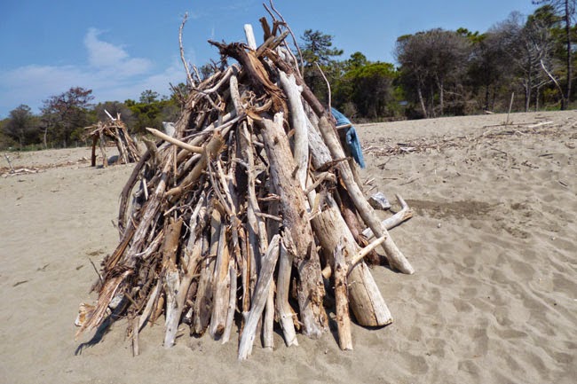 A “marca registrada” desta praia são as cabanas com galhos que as pessoas fazem e que são utilizadas pelos visitantes para se protegerem do sol: em alguns casos, verdadeiras obras de arte!